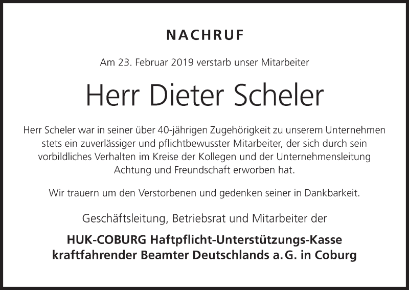 Hier finden Sie alle Traueranzeigen aus der Zeitung, die bisher für Dieter Scheler erschienen sind. Weitere Traueranzeigen, die in der Zeitung erscheinen, werden hier ebenfalls aufgelistet