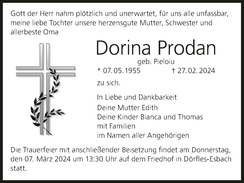 Hier finden Sie alle Traueranzeigen aus der Zeitung, die bisher für Donna Prodan erschienen sind. Weitere Traueranzeigen, die in der Zeitung erscheinen, werden hier ebenfalls aufgelistet