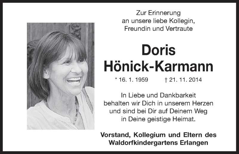 Hier finden Sie alle Traueranzeigen aus der Zeitung, die bisher für Doris Hönick-Karmann erschienen sind. Weitere Traueranzeigen, die in der Zeitung erscheinen, werden hier ebenfalls aufgelistet