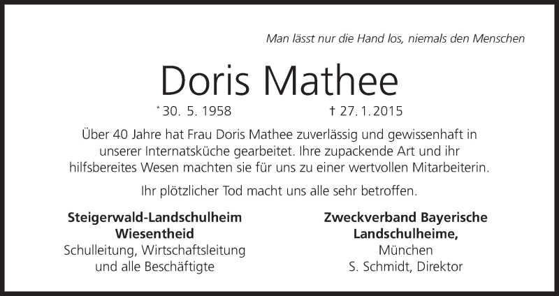 Hier finden Sie alle Traueranzeigen aus der Zeitung, die bisher für Doris Mathee erschienen sind. Weitere Traueranzeigen, die in der Zeitung erscheinen, werden hier ebenfalls aufgelistet