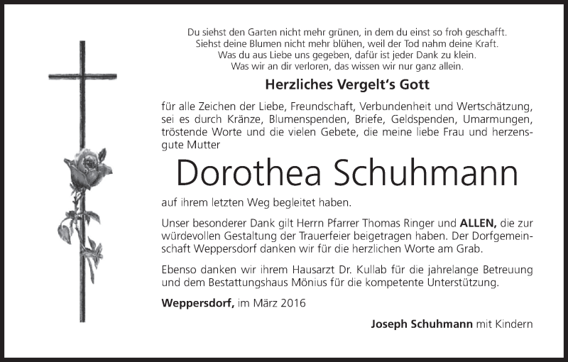 Hier finden Sie alle Traueranzeigen aus der Zeitung, die bisher für Dorothea Schuhmann erschienen sind. Weitere Traueranzeigen, die in der Zeitung erscheinen, werden hier ebenfalls aufgelistet