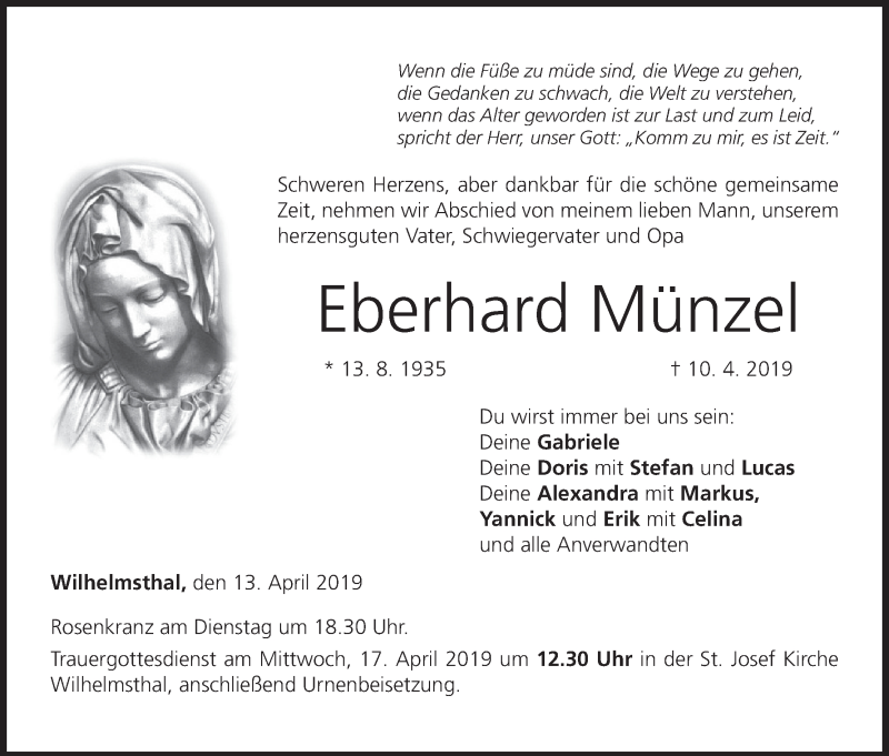 Hier finden Sie alle Traueranzeigen aus der Zeitung, die bisher für Eberhard Münzel erschienen sind. Weitere Traueranzeigen, die in der Zeitung erscheinen, werden hier ebenfalls aufgelistet