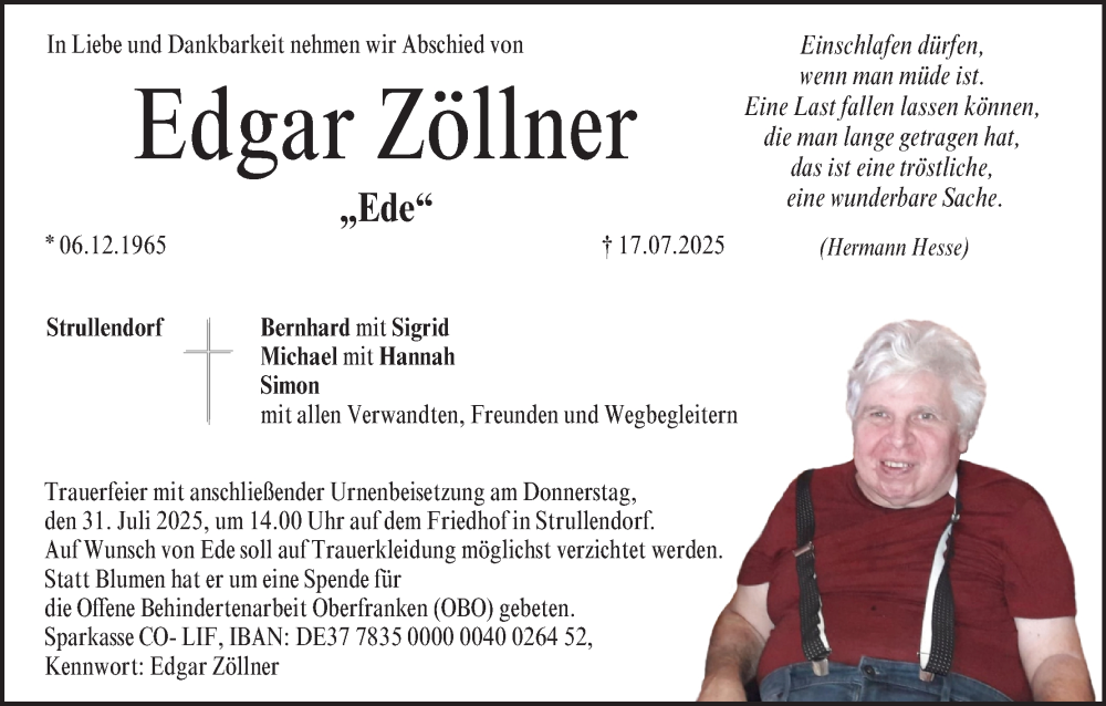 Hier finden Sie alle Traueranzeigen aus der Zeitung, die bisher für Edgar Zöllner erschienen sind. Weitere Traueranzeigen, die in der Zeitung erscheinen, werden hier ebenfalls aufgelistet