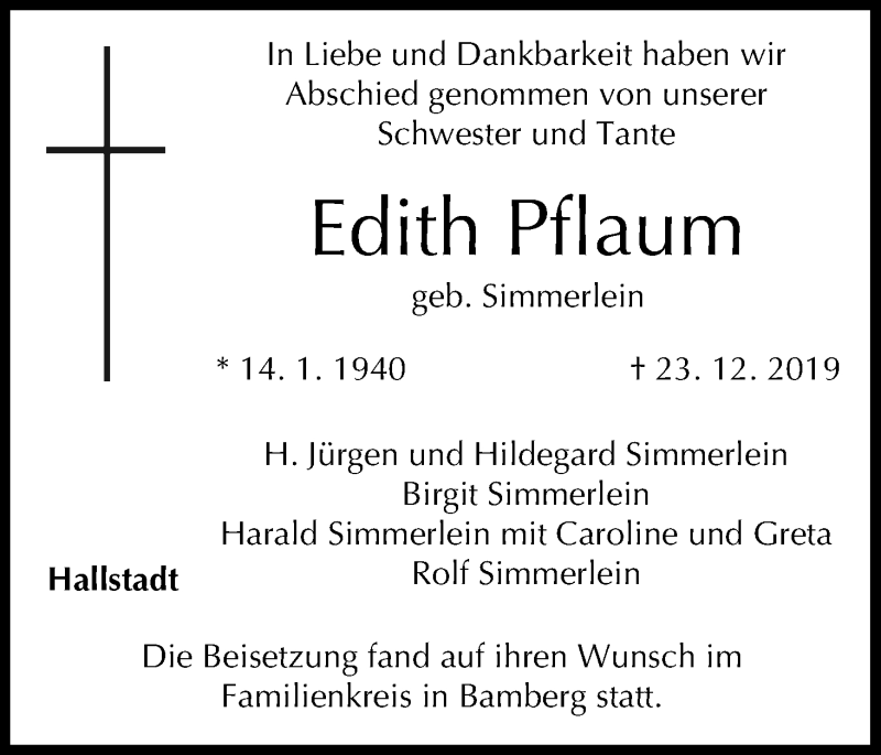 Hier finden Sie alle Traueranzeigen aus der Zeitung, die bisher für Edith Pflaum erschienen sind. Weitere Traueranzeigen, die in der Zeitung erscheinen, werden hier ebenfalls aufgelistet