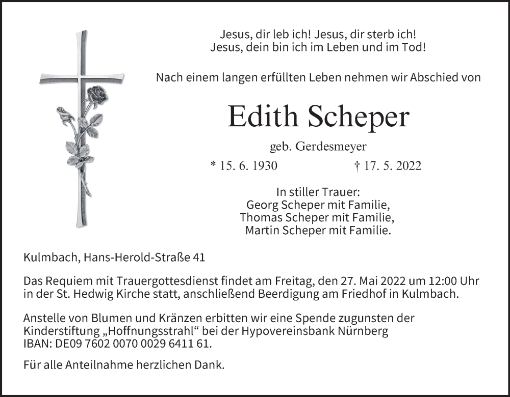 Hier finden Sie alle Traueranzeigen aus der Zeitung, die bisher für Edith Scheper erschienen sind. Weitere Traueranzeigen, die in der Zeitung erscheinen, werden hier ebenfalls aufgelistet