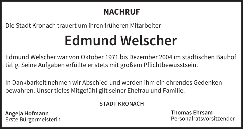 Hier finden Sie alle Traueranzeigen aus der Zeitung, die bisher für Edmund Welscher erschienen sind. Weitere Traueranzeigen, die in der Zeitung erscheinen, werden hier ebenfalls aufgelistet