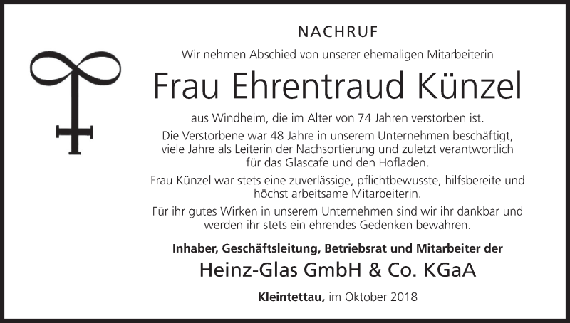 Hier finden Sie alle Traueranzeigen aus der Zeitung, die bisher für Ehrentraud Künzel erschienen sind. Weitere Traueranzeigen, die in der Zeitung erscheinen, werden hier ebenfalls aufgelistet