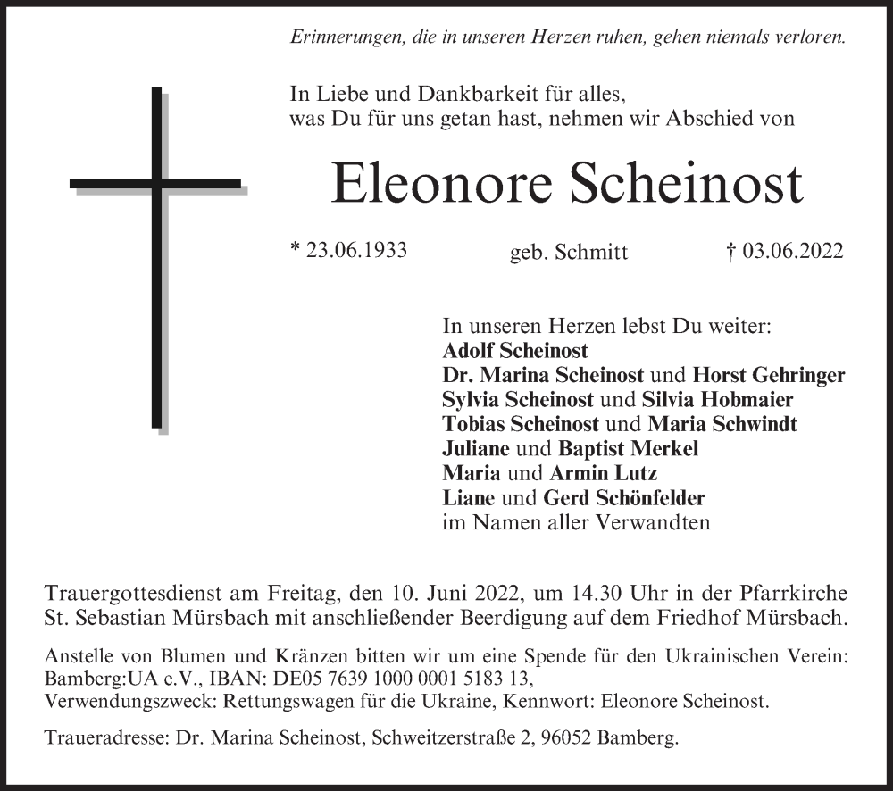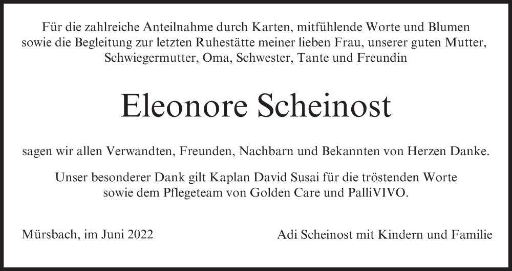 Hier finden Sie alle Traueranzeigen aus der Zeitung, die bisher für Eleonore Scheinost erschienen sind. Weitere Traueranzeigen, die in der Zeitung erscheinen, werden hier ebenfalls aufgelistet