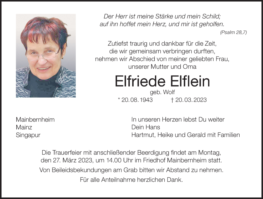 Hier finden Sie alle Traueranzeigen aus der Zeitung, die bisher für Elfriede Elflein erschienen sind. Weitere Traueranzeigen, die in der Zeitung erscheinen, werden hier ebenfalls aufgelistet