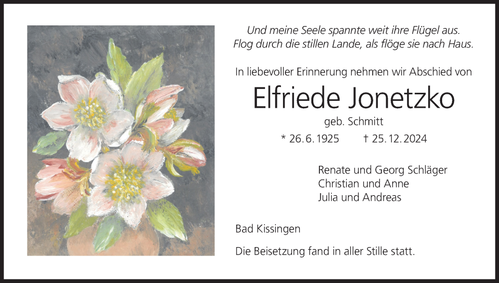 Hier finden Sie alle Traueranzeigen aus der Zeitung, die bisher für Elfriede Jonetzko erschienen sind. Weitere Traueranzeigen, die in der Zeitung erscheinen, werden hier ebenfalls aufgelistet