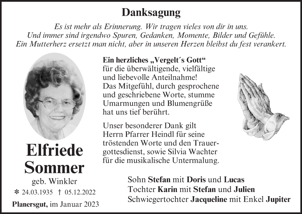 Hier finden Sie alle Traueranzeigen aus der Zeitung, die bisher für Elfriede Sommer erschienen sind. Weitere Traueranzeigen, die in der Zeitung erscheinen, werden hier ebenfalls aufgelistet