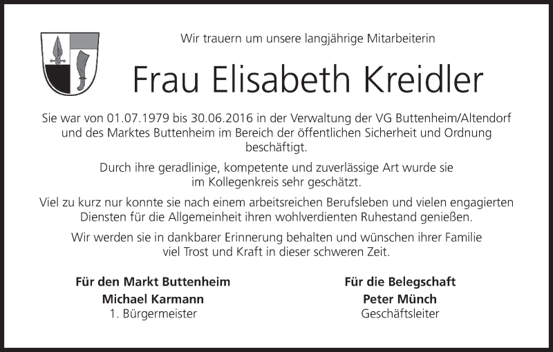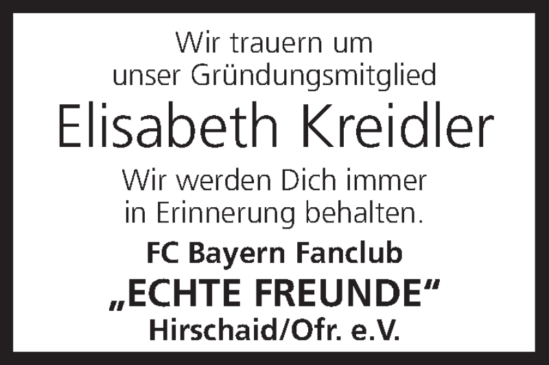 Hier finden Sie alle Traueranzeigen aus der Zeitung, die bisher für Elisabeth Kreidler erschienen sind. Weitere Traueranzeigen, die in der Zeitung erscheinen, werden hier ebenfalls aufgelistet