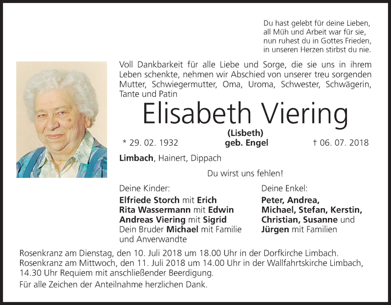 Hier finden Sie alle Traueranzeigen aus der Zeitung, die bisher für Elisabeth Viering erschienen sind. Weitere Traueranzeigen, die in der Zeitung erscheinen, werden hier ebenfalls aufgelistet
