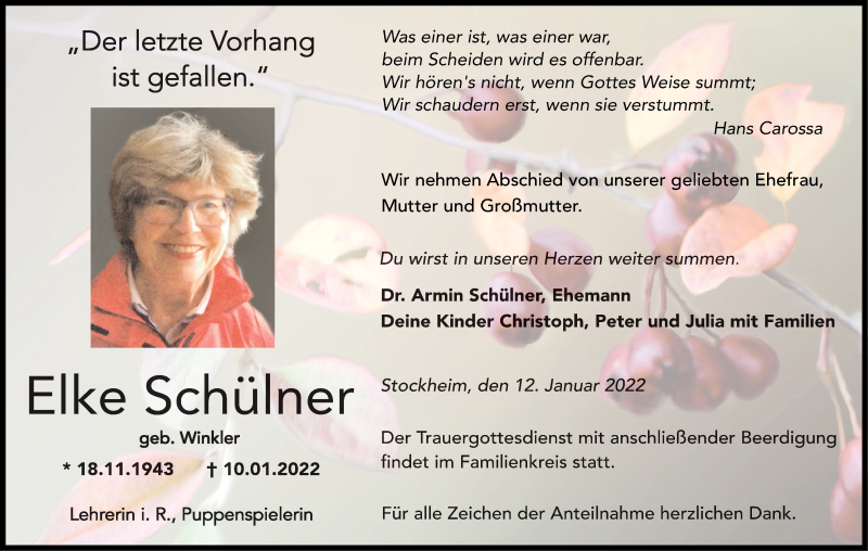 Hier finden Sie alle Traueranzeigen aus der Zeitung, die bisher für Elke Schülner erschienen sind. Weitere Traueranzeigen, die in der Zeitung erscheinen, werden hier ebenfalls aufgelistet