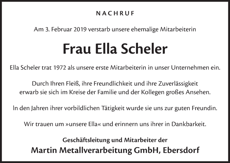 Hier finden Sie alle Traueranzeigen aus der Zeitung, die bisher für Ella Scheler erschienen sind. Weitere Traueranzeigen, die in der Zeitung erscheinen, werden hier ebenfalls aufgelistet