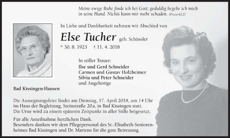 Hier finden Sie alle Traueranzeigen aus der Zeitung, die bisher für Else Tucher erschienen sind. Weitere Traueranzeigen, die in der Zeitung erscheinen, werden hier ebenfalls aufgelistet