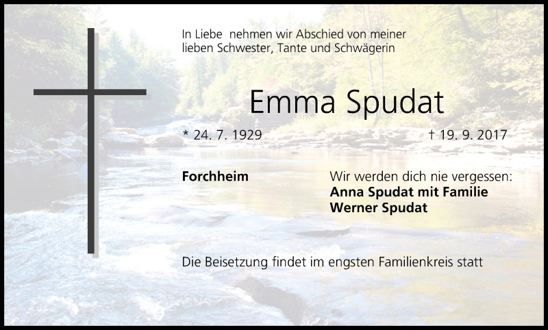 Hier finden Sie alle Traueranzeigen aus der Zeitung, die bisher für Emma Spudat erschienen sind. Weitere Traueranzeigen, die in der Zeitung erscheinen, werden hier ebenfalls aufgelistet