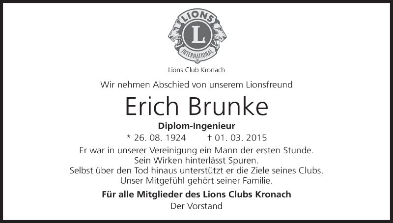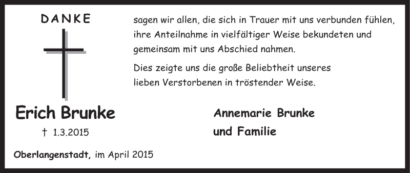 Hier finden Sie alle Traueranzeigen aus der Zeitung, die bisher für Erich Brunke erschienen sind. Weitere Traueranzeigen, die in der Zeitung erscheinen, werden hier ebenfalls aufgelistet