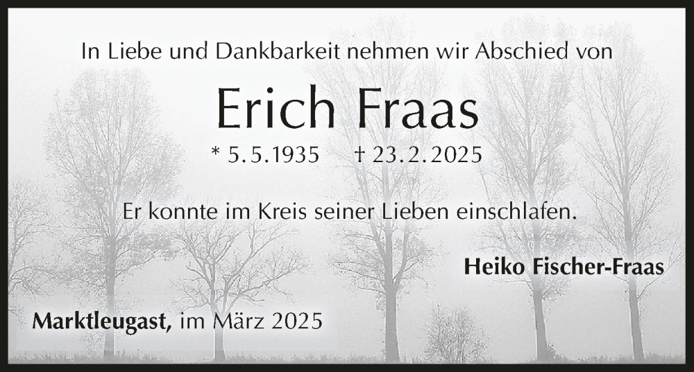 Hier finden Sie alle Traueranzeigen aus der Zeitung, die bisher für Erich Fraas erschienen sind. Weitere Traueranzeigen, die in der Zeitung erscheinen, werden hier ebenfalls aufgelistet