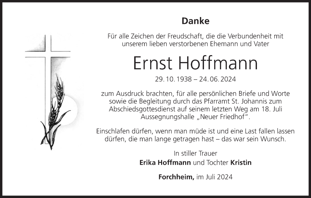 Hier finden Sie alle Traueranzeigen aus der Zeitung, die bisher für Ernst Hoffmann erschienen sind. Weitere Traueranzeigen, die in der Zeitung erscheinen, werden hier ebenfalls aufgelistet