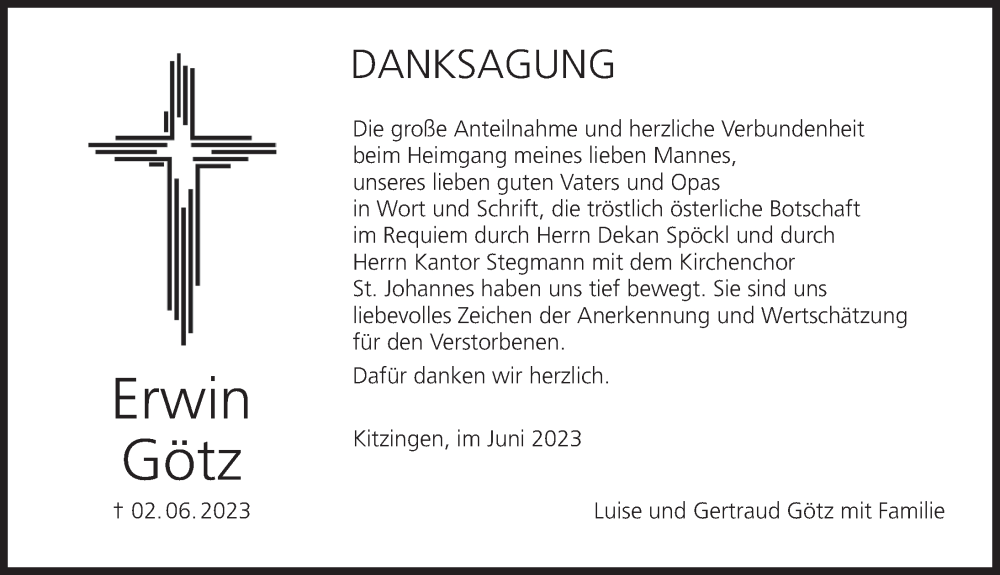 Hier finden Sie alle Traueranzeigen aus der Zeitung, die bisher für Erwin Götz erschienen sind. Weitere Traueranzeigen, die in der Zeitung erscheinen, werden hier ebenfalls aufgelistet