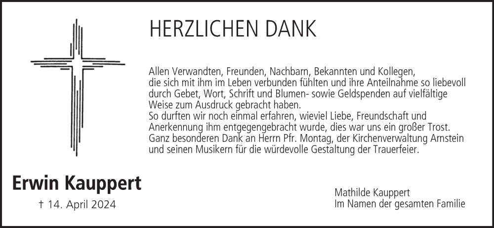Hier finden Sie alle Traueranzeigen aus der Zeitung, die bisher für Erwin Kauppert erschienen sind. Weitere Traueranzeigen, die in der Zeitung erscheinen, werden hier ebenfalls aufgelistet
