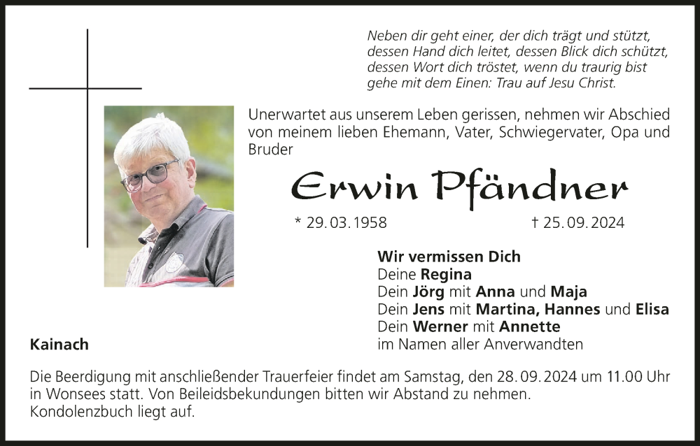 Hier finden Sie alle Traueranzeigen aus der Zeitung, die bisher für Erwin Pfändner erschienen sind. Weitere Traueranzeigen, die in der Zeitung erscheinen, werden hier ebenfalls aufgelistet