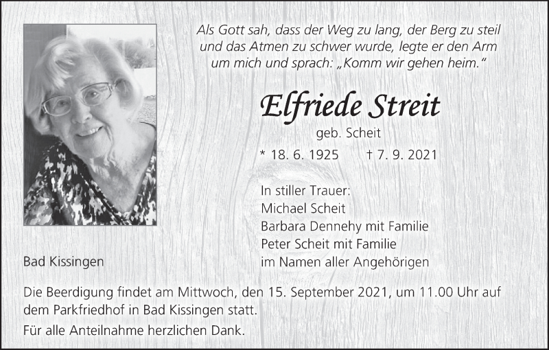 Hier finden Sie alle Traueranzeigen aus der Zeitung, die bisher für Etfriede Streit erschienen sind. Weitere Traueranzeigen, die in der Zeitung erscheinen, werden hier ebenfalls aufgelistet