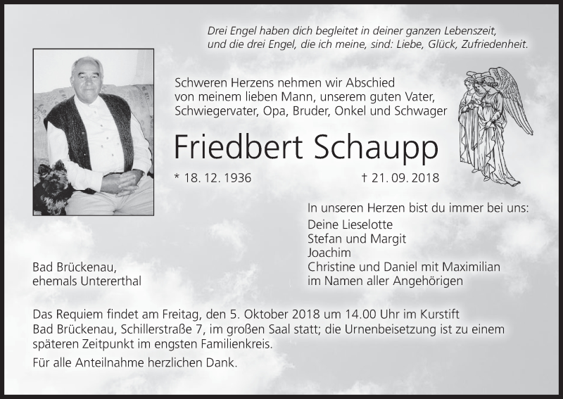 Hier finden Sie alle Traueranzeigen aus der Zeitung, die bisher für Friedbert Schaupp erschienen sind. Weitere Traueranzeigen, die in der Zeitung erscheinen, werden hier ebenfalls aufgelistet