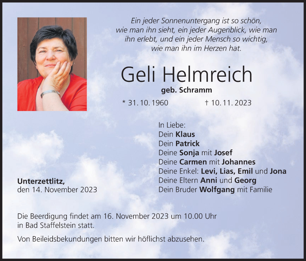 Hier finden Sie alle Traueranzeigen aus der Zeitung, die bisher für Geli Heimreich erschienen sind. Weitere Traueranzeigen, die in der Zeitung erscheinen, werden hier ebenfalls aufgelistet
