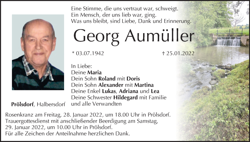 Hier finden Sie alle Traueranzeigen aus der Zeitung, die bisher für Georg Aumüller erschienen sind. Weitere Traueranzeigen, die in der Zeitung erscheinen, werden hier ebenfalls aufgelistet