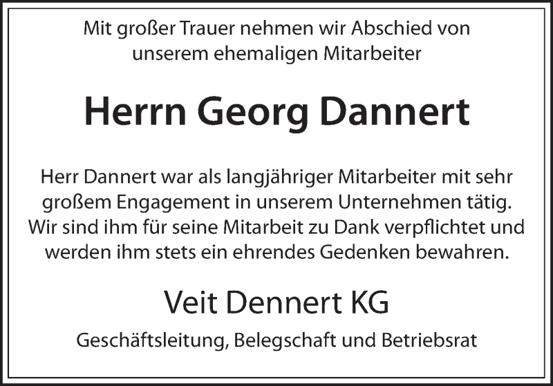 Hier finden Sie alle Traueranzeigen aus der Zeitung, die bisher für Georg Dannert erschienen sind. Weitere Traueranzeigen, die in der Zeitung erscheinen, werden hier ebenfalls aufgelistet