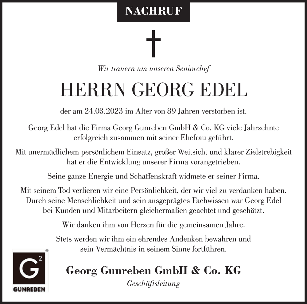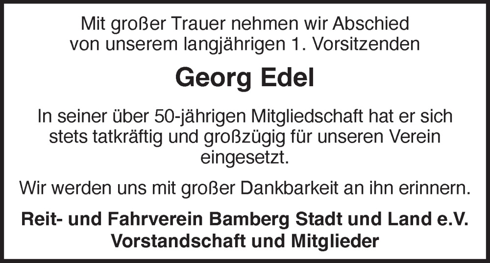 Hier finden Sie alle Traueranzeigen aus der Zeitung, die bisher für Georg Edel erschienen sind. Weitere Traueranzeigen, die in der Zeitung erscheinen, werden hier ebenfalls aufgelistet