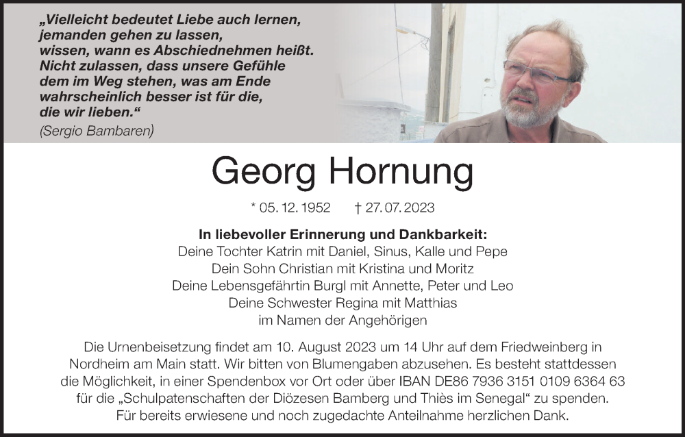 Hier finden Sie alle Traueranzeigen aus der Zeitung, die bisher für Georg Hornung erschienen sind. Weitere Traueranzeigen, die in der Zeitung erscheinen, werden hier ebenfalls aufgelistet