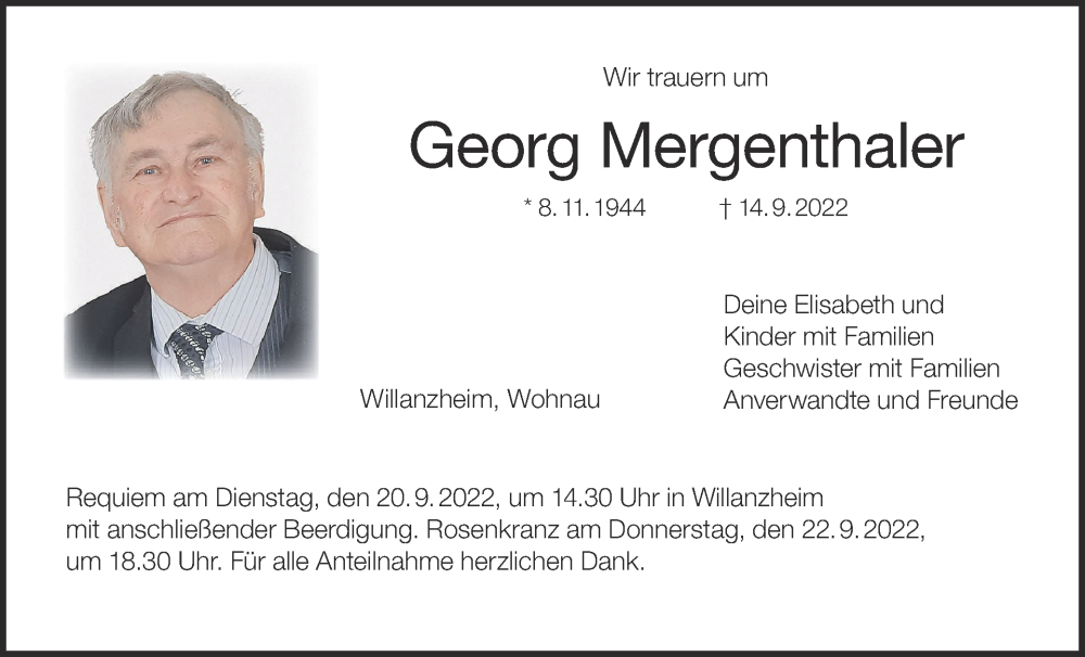 Hier finden Sie alle Traueranzeigen aus der Zeitung, die bisher für Georg Mergenthaler erschienen sind. Weitere Traueranzeigen, die in der Zeitung erscheinen, werden hier ebenfalls aufgelistet