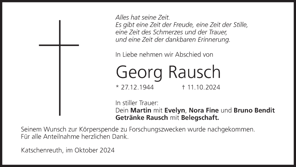 Hier finden Sie alle Traueranzeigen aus der Zeitung, die bisher für Georg Rausch erschienen sind. Weitere Traueranzeigen, die in der Zeitung erscheinen, werden hier ebenfalls aufgelistet