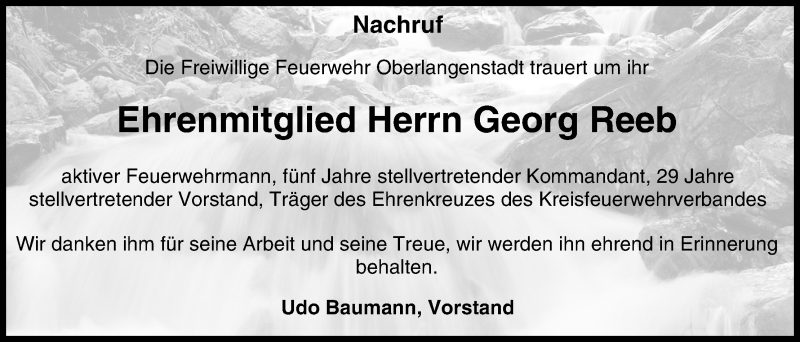 Hier finden Sie alle Traueranzeigen aus der Zeitung, die bisher für Georg Reeb erschienen sind. Weitere Traueranzeigen, die in der Zeitung erscheinen, werden hier ebenfalls aufgelistet