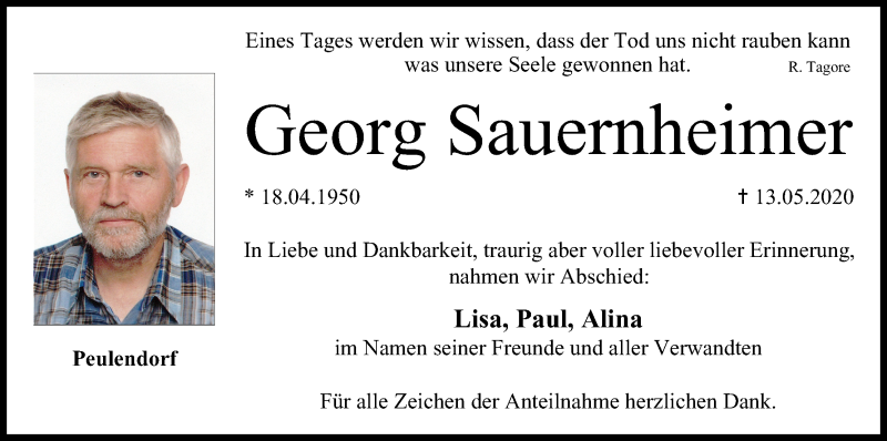 Hier finden Sie alle Traueranzeigen aus der Zeitung, die bisher für Georg Sauernheimer erschienen sind. Weitere Traueranzeigen, die in der Zeitung erscheinen, werden hier ebenfalls aufgelistet