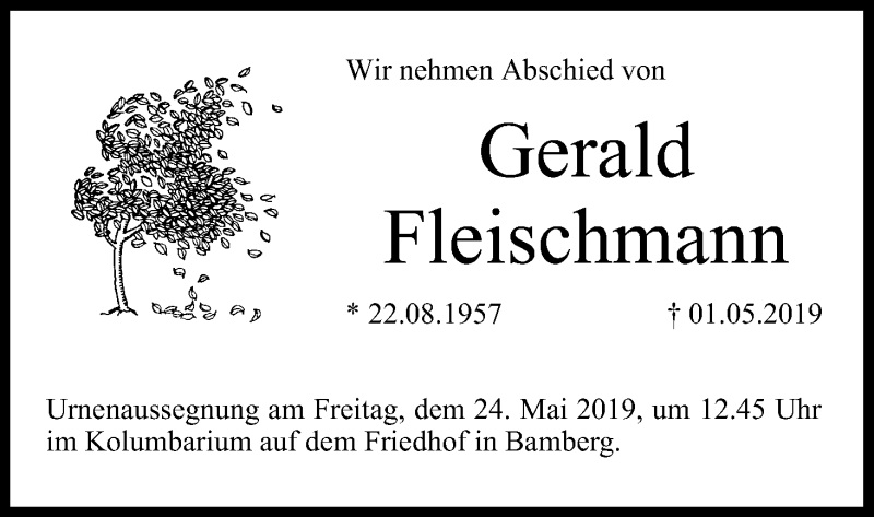 Hier finden Sie alle Traueranzeigen aus der Zeitung, die bisher für Gerald Fleischmann erschienen sind. Weitere Traueranzeigen, die in der Zeitung erscheinen, werden hier ebenfalls aufgelistet