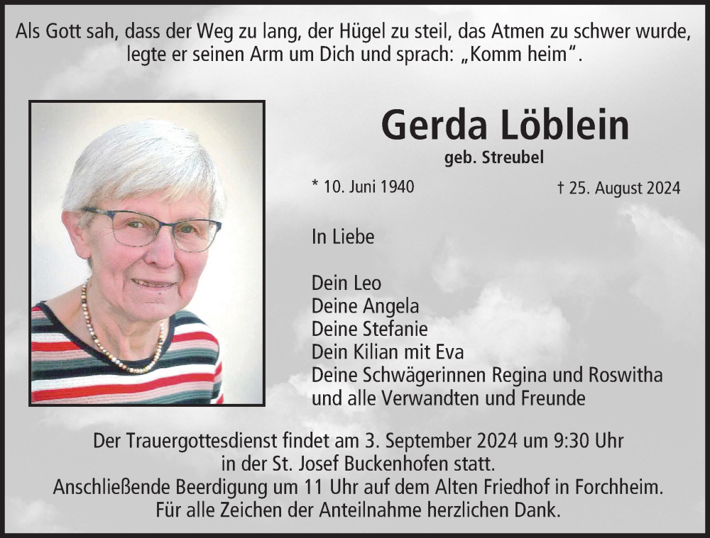 Hier finden Sie alle Traueranzeigen aus der Zeitung, die bisher für Gerda Löblein erschienen sind. Weitere Traueranzeigen, die in der Zeitung erscheinen, werden hier ebenfalls aufgelistet