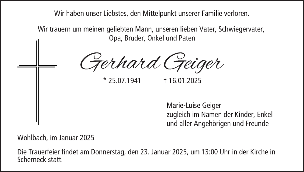 Hier finden Sie alle Traueranzeigen aus der Zeitung, die bisher für Gerhard Geiger erschienen sind. Weitere Traueranzeigen, die in der Zeitung erscheinen, werden hier ebenfalls aufgelistet