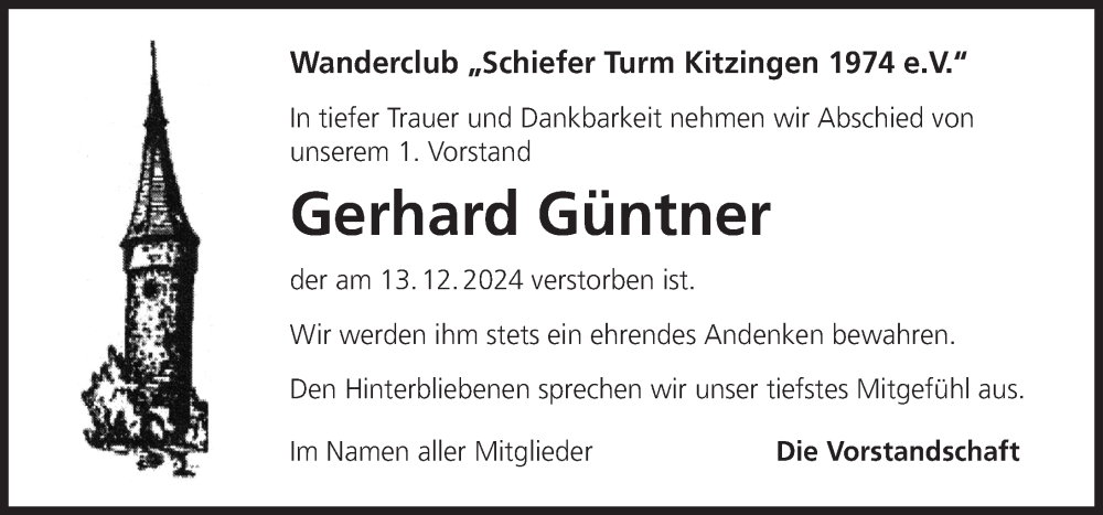 Hier finden Sie alle Traueranzeigen aus der Zeitung, die bisher für Gerhard Güntner erschienen sind. Weitere Traueranzeigen, die in der Zeitung erscheinen, werden hier ebenfalls aufgelistet