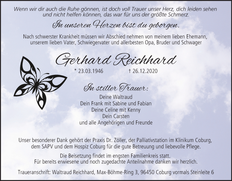 Hier finden Sie alle Traueranzeigen aus der Zeitung, die bisher für Gerhard Reichhard erschienen sind. Weitere Traueranzeigen, die in der Zeitung erscheinen, werden hier ebenfalls aufgelistet