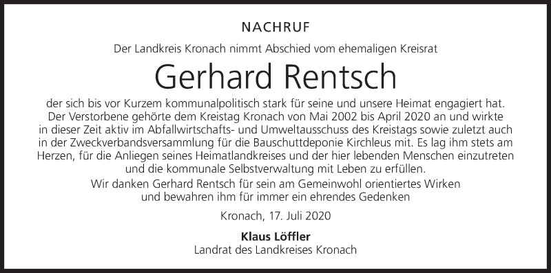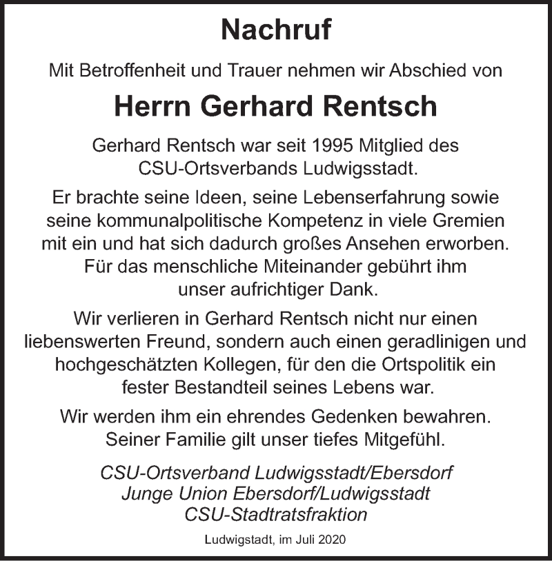 Hier finden Sie alle Traueranzeigen aus der Zeitung, die bisher für Gerhard Rentsch erschienen sind. Weitere Traueranzeigen, die in der Zeitung erscheinen, werden hier ebenfalls aufgelistet