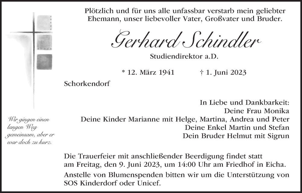 Hier finden Sie alle Traueranzeigen aus der Zeitung, die bisher für Gerhard Schindler erschienen sind. Weitere Traueranzeigen, die in der Zeitung erscheinen, werden hier ebenfalls aufgelistet