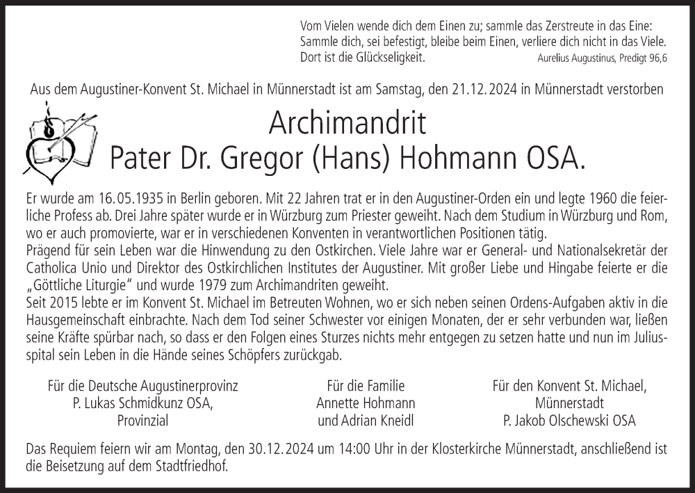Hier finden Sie alle Traueranzeigen aus der Zeitung, die bisher für Gregor Hohmann erschienen sind. Weitere Traueranzeigen, die in der Zeitung erscheinen, werden hier ebenfalls aufgelistet