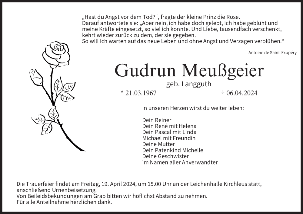 Hier finden Sie alle Traueranzeigen aus der Zeitung, die bisher für Gudrun Meußgeier erschienen sind. Weitere Traueranzeigen, die in der Zeitung erscheinen, werden hier ebenfalls aufgelistet