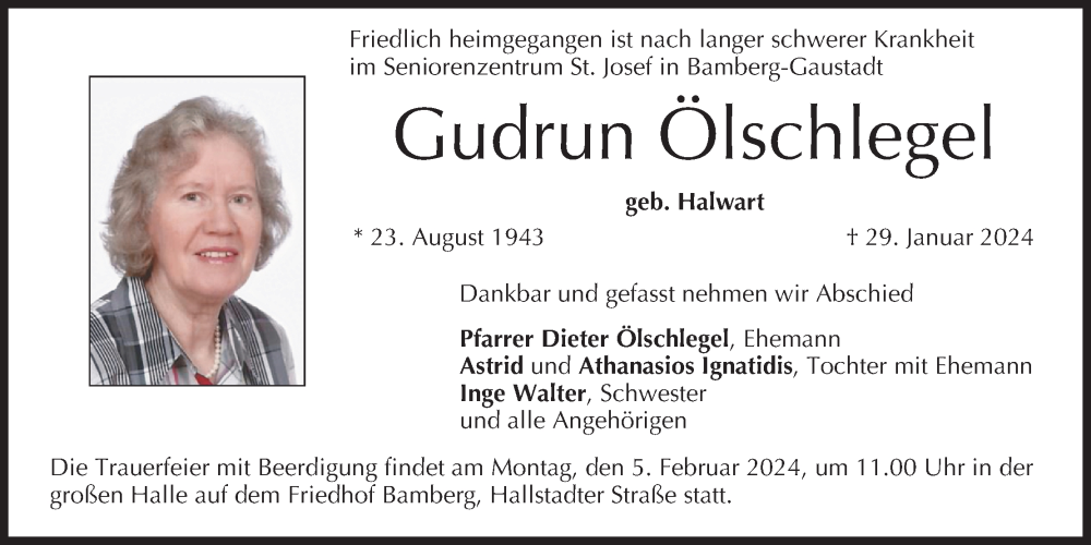Hier finden Sie alle Traueranzeigen aus der Zeitung, die bisher für Gudrun Ölschlegel erschienen sind. Weitere Traueranzeigen, die in der Zeitung erscheinen, werden hier ebenfalls aufgelistet