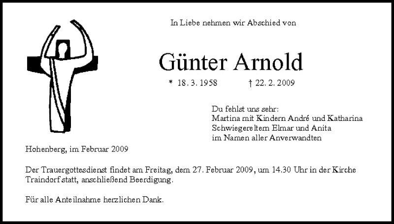 Hier finden Sie alle Traueranzeigen aus der Zeitung, die bisher für Günter Arnold erschienen sind. Weitere Traueranzeigen, die in der Zeitung erscheinen, werden hier ebenfalls aufgelistet