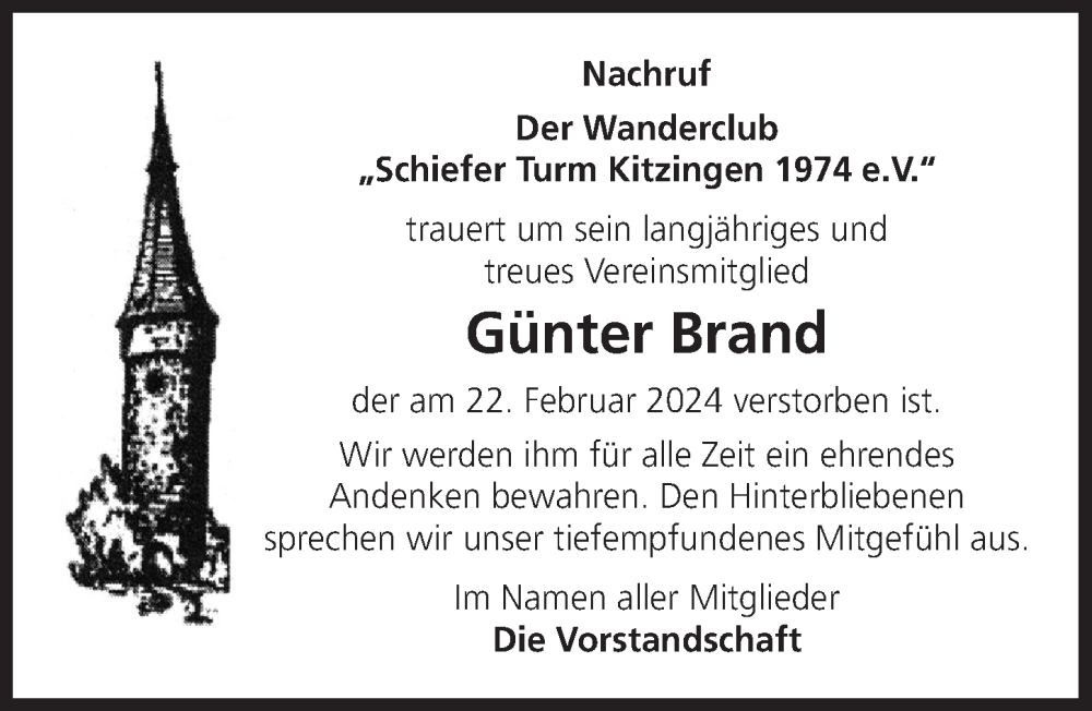 Hier finden Sie alle Traueranzeigen aus der Zeitung, die bisher für Günter Brand erschienen sind. Weitere Traueranzeigen, die in der Zeitung erscheinen, werden hier ebenfalls aufgelistet
